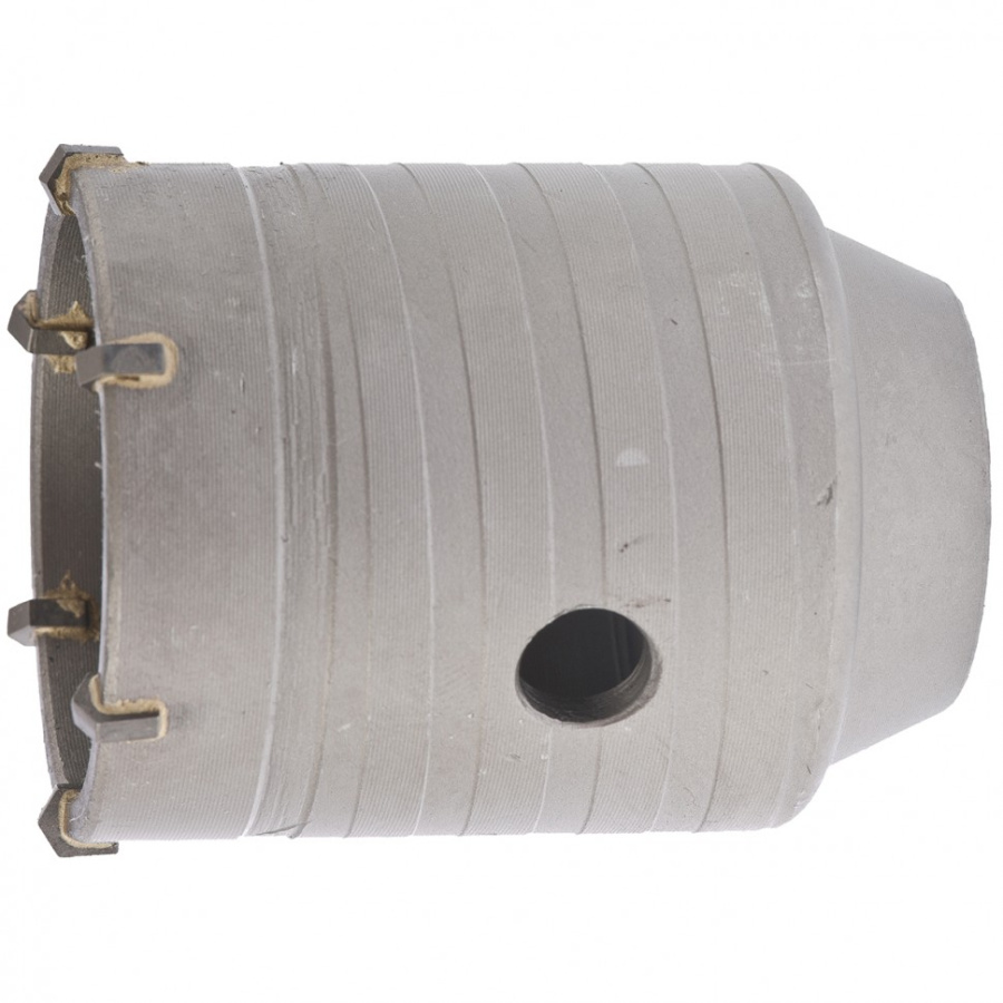 На внешней стороне коронки нарезана спиральная канавка для улучшения вывода продуктов сверления и снижения нагрузки на перфоратор.