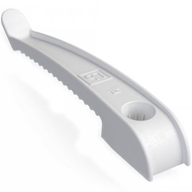 Держатель кабеля - предназначенный для крепления кабеля диаметром до 10 мм. Это специализированный крепеж разработан для прямого монтажа, что позволяет осуществлять крепление монтажными пистолетами по бетонным поверхностям. Позволяет заправлять кабель отгиная пристреленный крепеж, что позваляет в кратчайшие сроки осуществить монтаж. Односторонний держатель кабеля предназначен для крепления 8 кабелей.