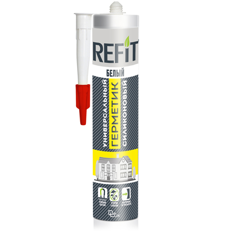 Герметик силиконовый универсальный белый REFIT 260 мл обеспечивает прочное и долговечное соединение, что позволяет использовать его для различных задач герметизации и ремонта.