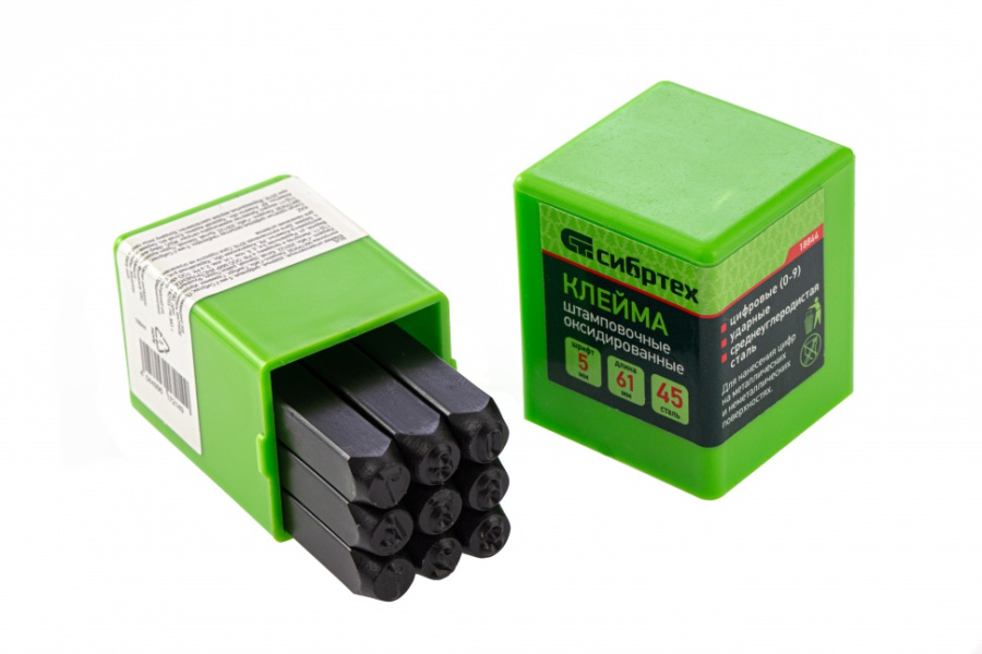 Цифровые штамповочные клейма торговой марки «Сибртех» с арабской нумерацией предназначены для нанесения маркировочных знаков и штампов на металлические изделия. Оттиск осуществляется ударным способом.