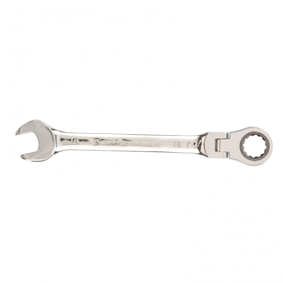 Ключ комбинированный трещоточный, 16 мм, CrV, шарнирный, зеркальный хром Matrix 14829