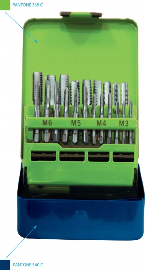 Метчики: М3 x 0.5 мм, М4 x 0.7 мм, М5 x 0.8 мм, М6 x 1 мм, М8 x 1.25 мм, М10 x 1.5 мм, М12 x 1.75 мм.
