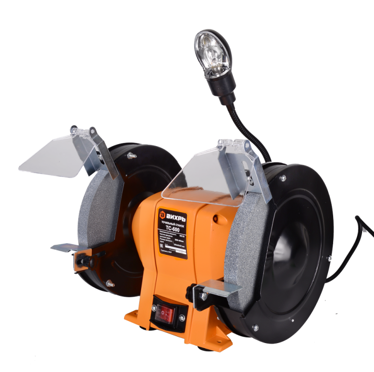 Точильный станок ВИХРЬ ТС-600 - самый мощный точильный станок линейке этого бренда. Позволяет затачивать как небольшие предметы, так и крупные (топоры, фрезы, лопаты, мотыги).