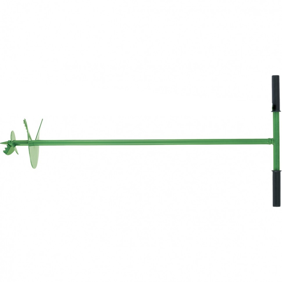 На одном конце бура имеется Т-образная рукоятка, другой конец выполнен в виде шнека для лучшего проникновения в грунт.