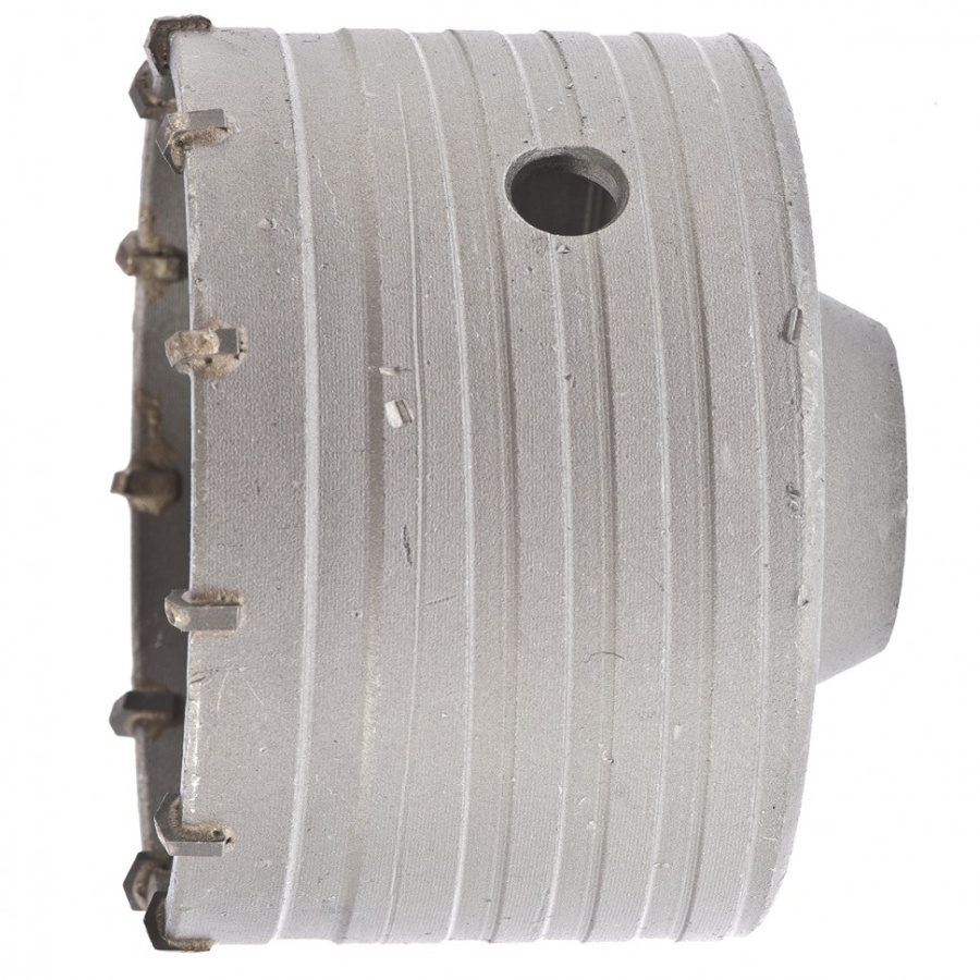 На внешней стороне коронки нарезана спиральная канавка для улучшения вывода продуктов сверления и снижения нагрузки на перфоратор.