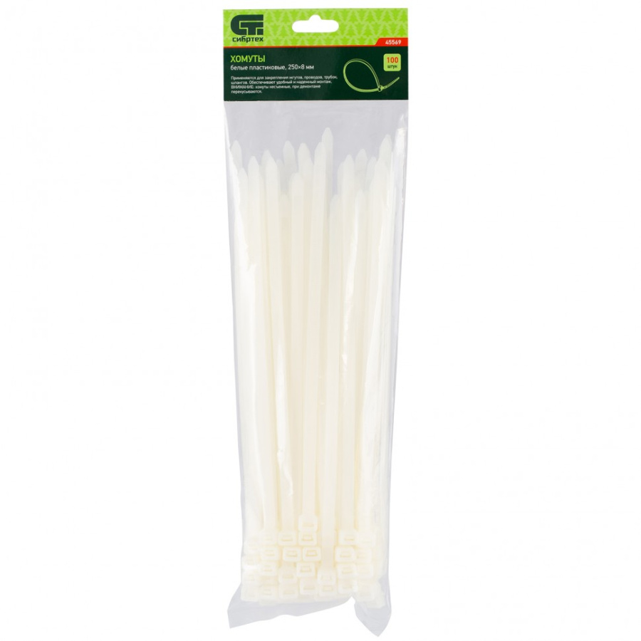 Хомуты, 250 х 8 мм, пластиковые, белые, 100 шт Сибртех 45569