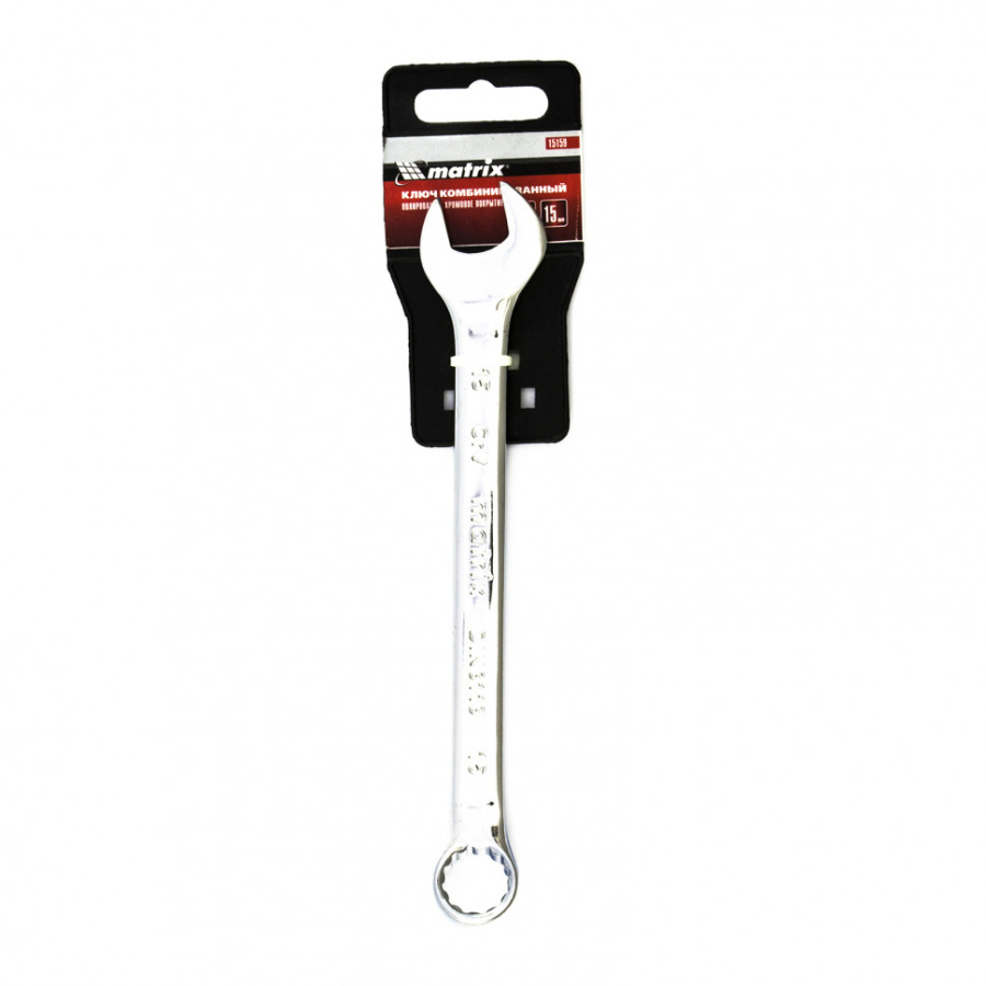 Ключ комбинированный, 15 мм, CrV, полированный хром Matrix 15159