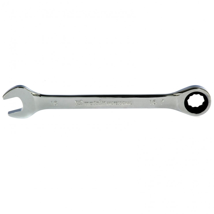Ключ комбинированный трещоточный, 16 мм, CrV, зеркальный хром Matrix Professional 14809