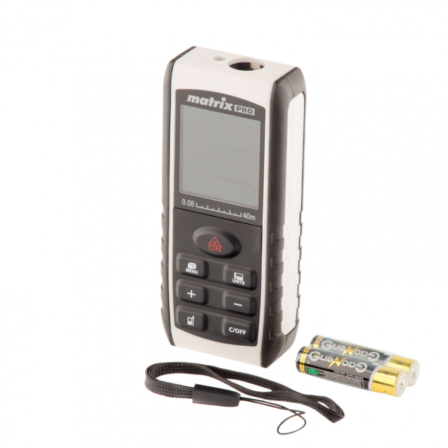 Лазерный дальномер Matrix LD-40 применяется для вычисления площади и объема помещения, замера углов и определения длины на расстояние до 40 м. Он используется как в помещении, так и на улице, поэтому подходит для проведения строительных и ремонтных, а также дорожных и геодезических работ.