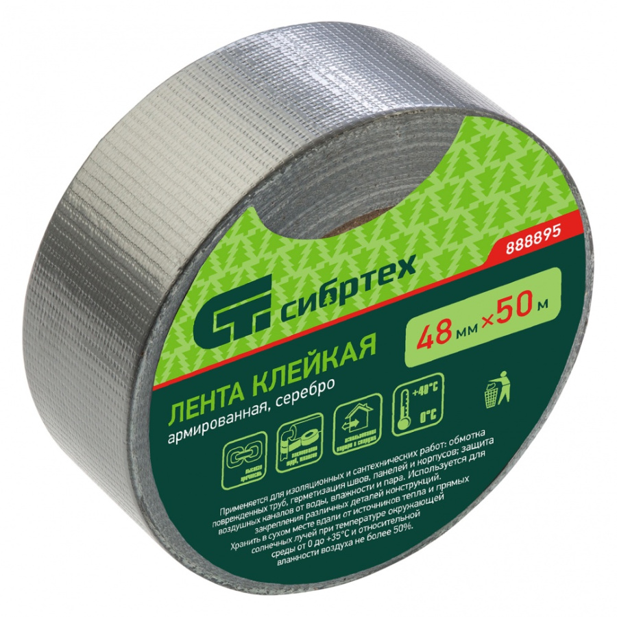 Лента клейкая армированная, 48 мм х 50 м, серебро Сибртех 888895
