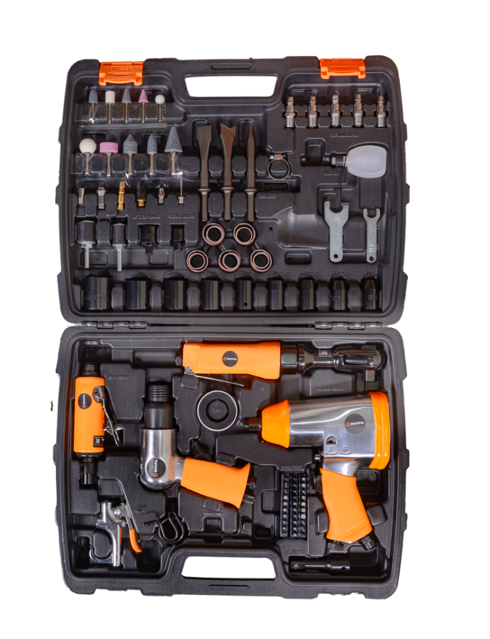 Набор пневмоинструмента Вихрь НП-90 - это набор из пяти наиболее необходимых пневмоинструментов для выполнения различных работ, работающих от компрессора и использующих энергию сжатого воздуха. Благодаря универсальному разъему пневмоинструмент подойдет для работы на любом компрессоре.