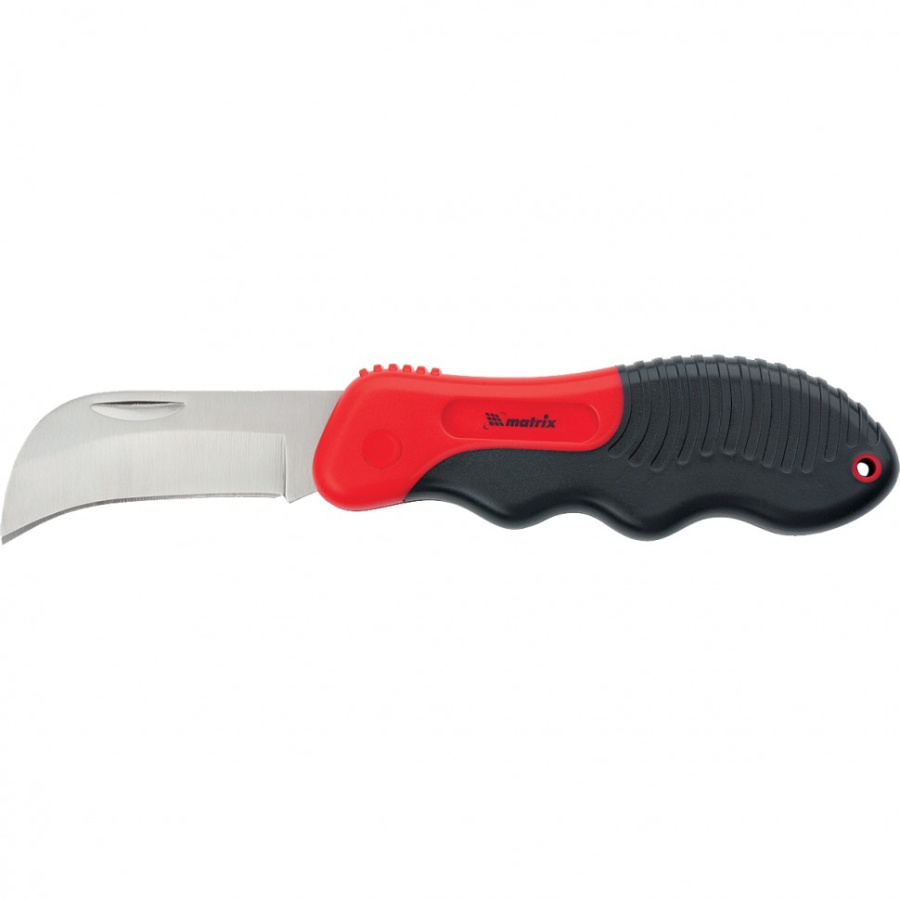 Нож электрика, складной, изогнутое лезвие, эргономичная двухкомпонентная рукоятка Matrix 78986