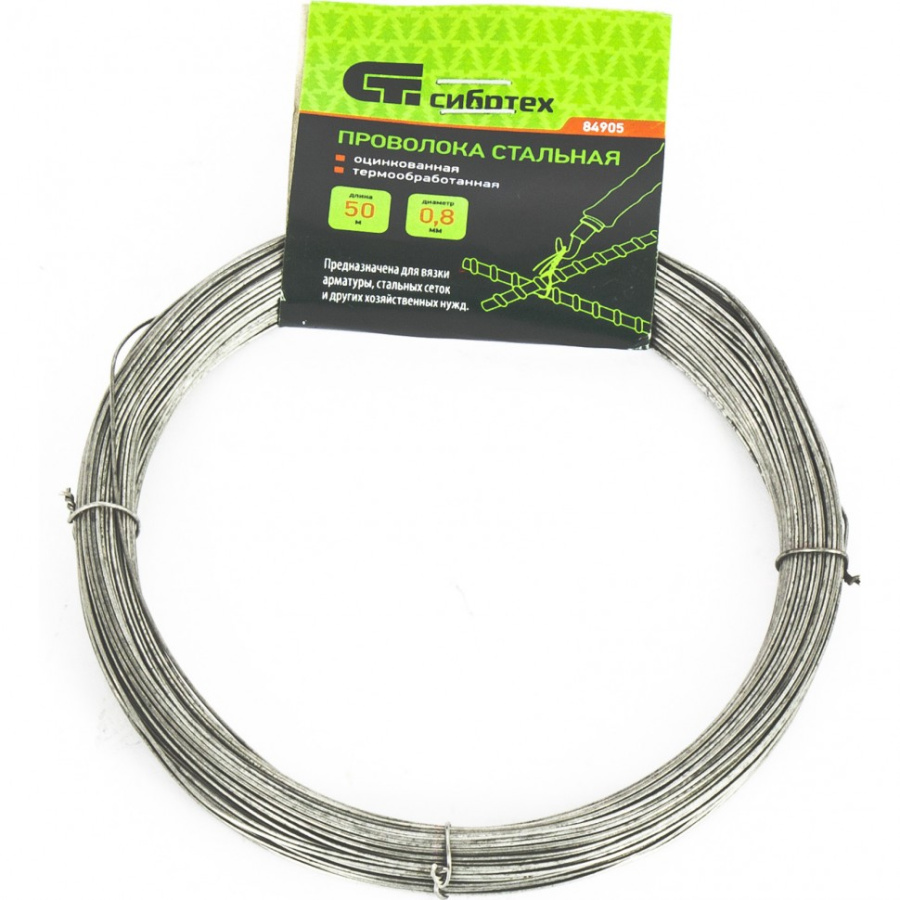 Проволока стальная 50 м, оцинкованная, термообработанная 0.8 мм Сибртех 84905