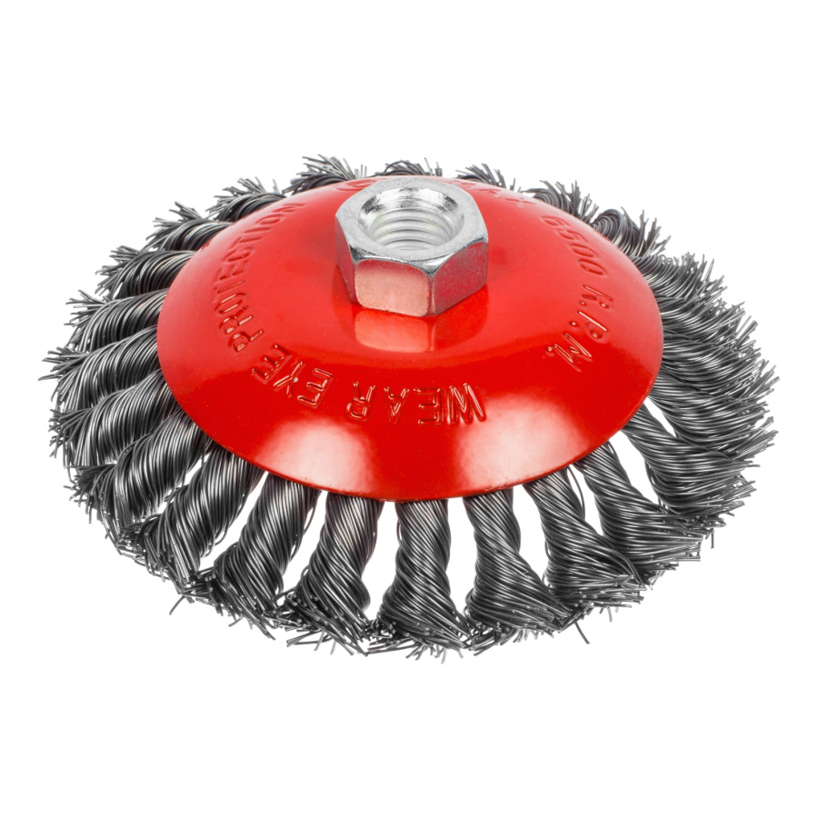 Щетка-крацовка коническая, витая стальная проволока, посадочная гайка М14, 125мм