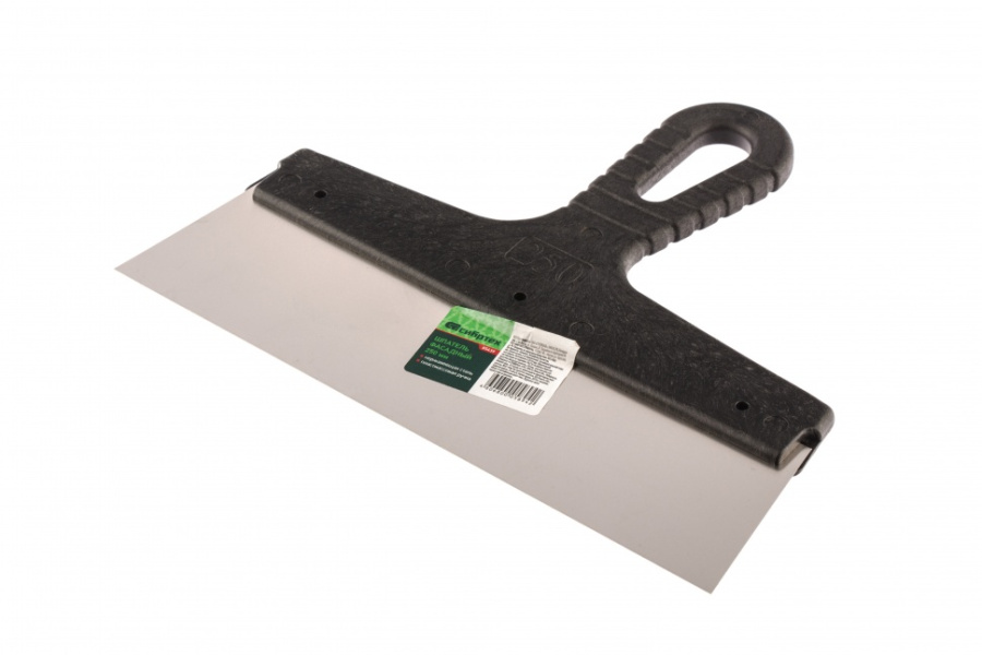 Полотно шпателя изготовлено из нержавеющей стали. Облегченная ручка из ударопрочной пластмассы.