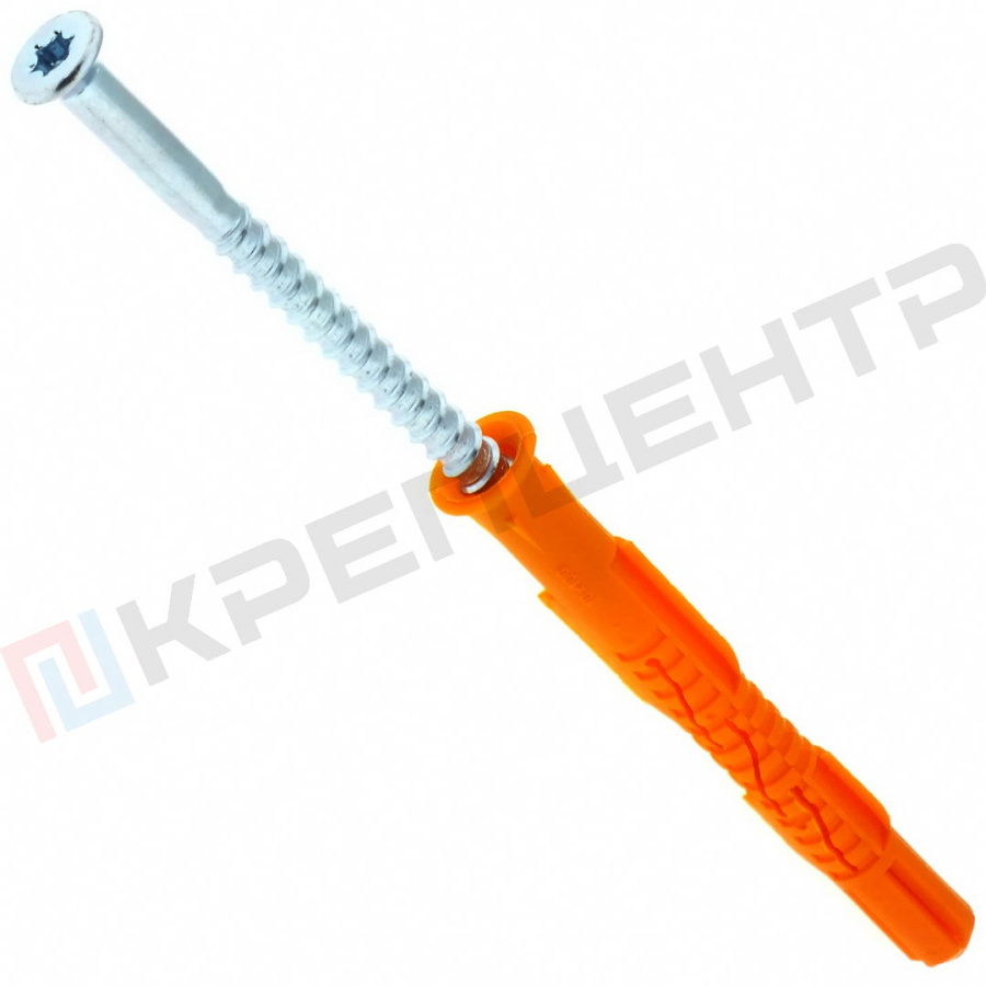 В комплект входит полипропиленовый дюбель (оранжевый) и потайной электрооцинкованный шуруп со шлицом TORX-30.