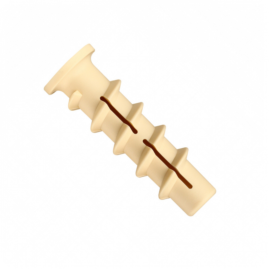 - геометрия внутреннего профиля дюбеля позволяет использовать при монтаже шурупы по дереву, универсальные шурупы, винты с метрической резьбой, болты и резьбовые шпильки;