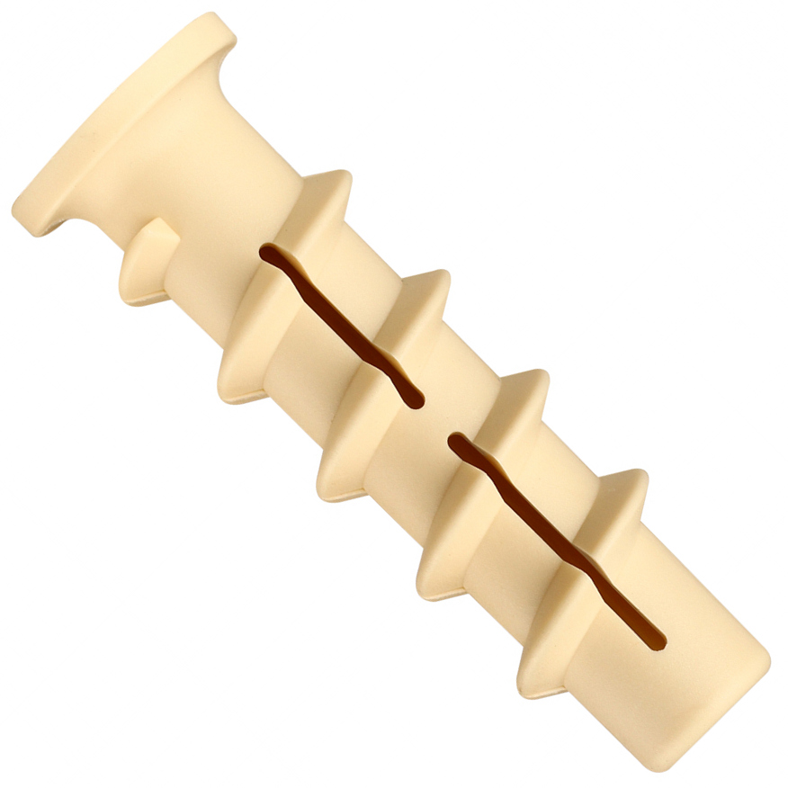 - геометрия внутреннего профиля дюбеля позволяет использовать при монтаже шурупы по дереву, универсальные шурупы, винты с метрической резьбой, болты и резьбовые шпильки;