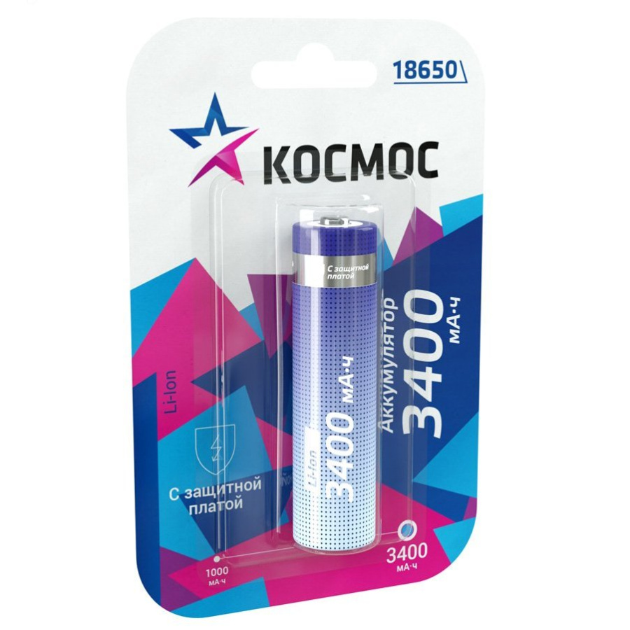 Аккумулятор 3400мАч 18650 Li-ion 1BL Космос