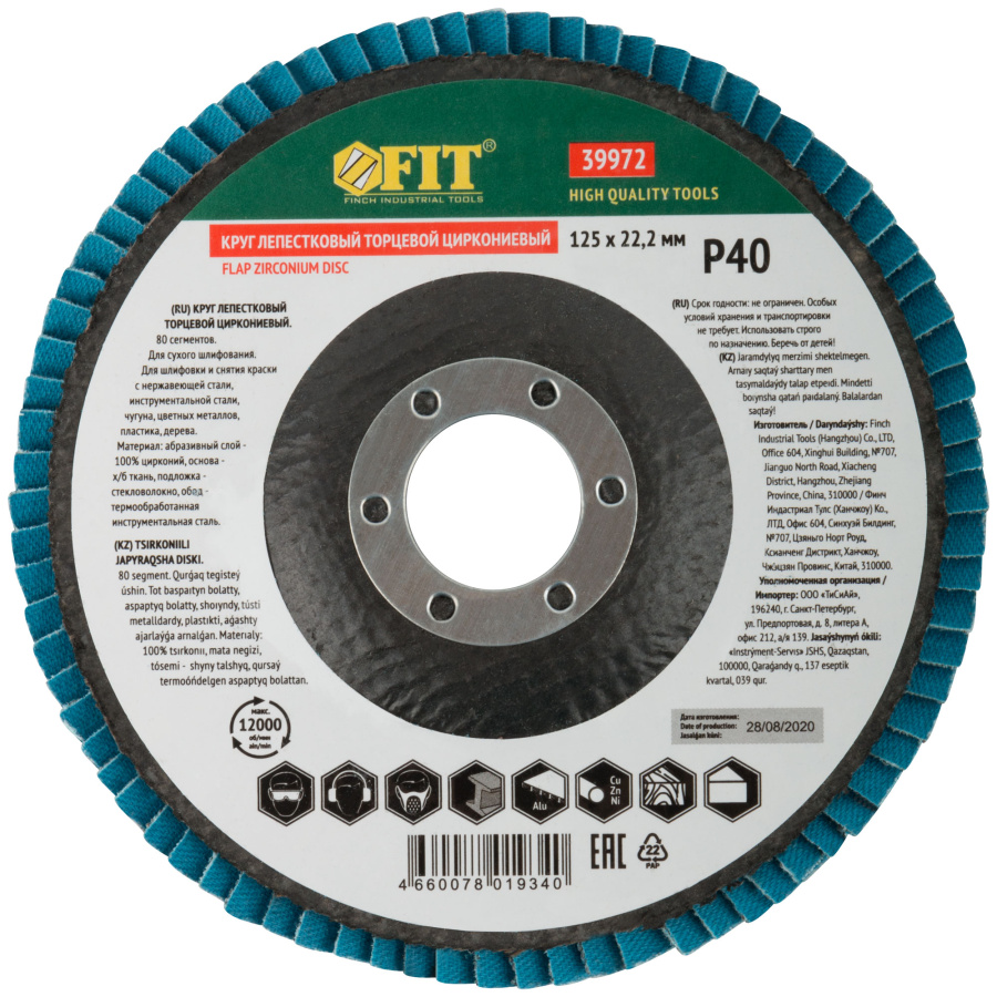 Диск лепестковый торцевой циркониевый, 125 мм P 40 39972