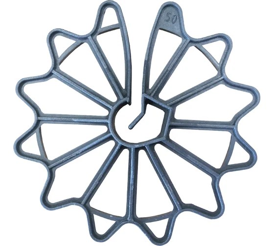 Фиксатор арматуры "Звездочка" 50 мм одеваются на арматурные прутья диаметром от 6 до 25 мм, перед заливкой бетона в вертикальных монолитных конструкциях для формирования защитного слоя бетона 50 мм.