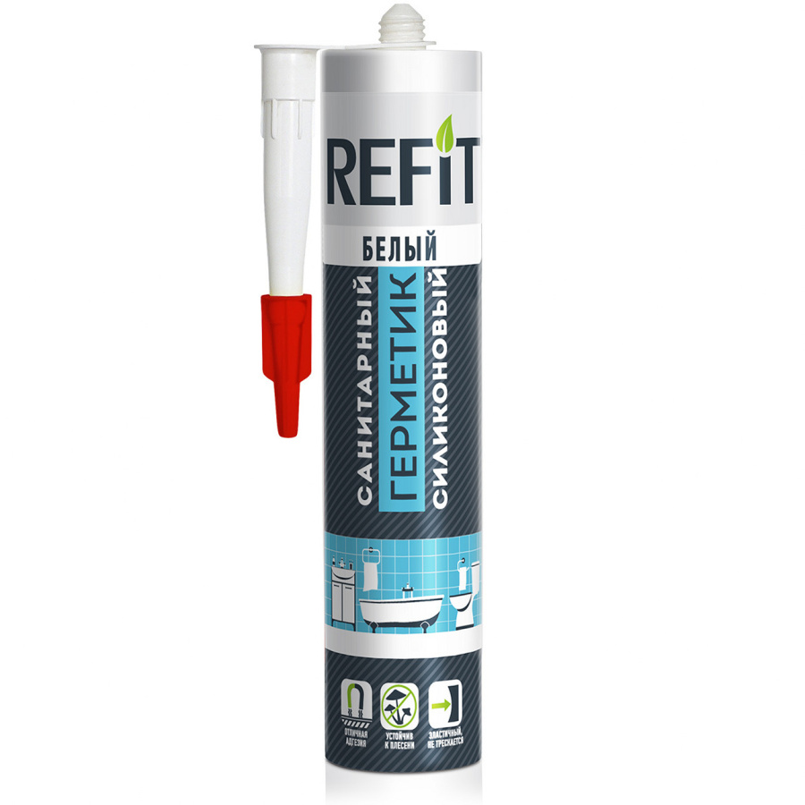 Герметик силиконовый санитарный белый REFIT 260 мл обеспечивает прочное и герметичное соединение, идеально подходит для использования в ванной комнате и кухне. Он эффективно заполняет щели и предотвращает проникновение влаги.