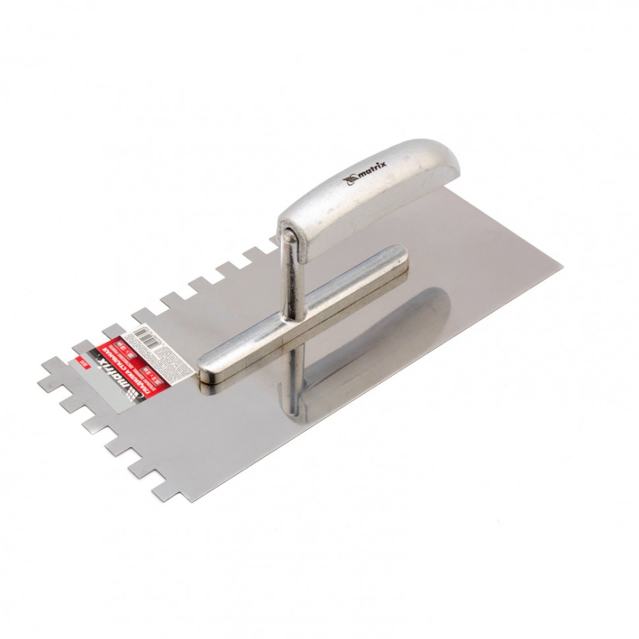 Гладилка из нержавеющей стали, 280 x 130 мм, деревянная ручка, зуб 10 x 10 мм Matrix 86741