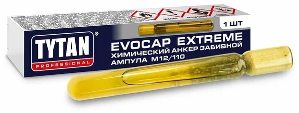 Химический анкер ампула EVOCAP STANDARD M12/110 забивной TYTAN Professional легко применять и быстро затвердевает, что упрощает процесс работы. Он обеспечивает надежное и стабильное крепление, что делает его идеальным выбором для широкого спектра строительных задач.
