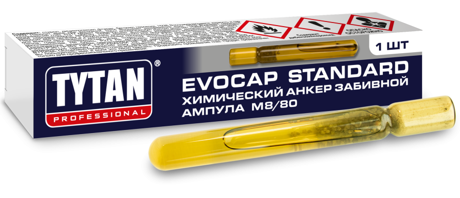 Химический анкер ампула EVOCAP STANDARD M8/80 забивной TYTAN Professional легко использовать и быстро затвердевает. Он обеспечивает простоту и эффективность в установке, обладая высокой прочностью и долговечностью.