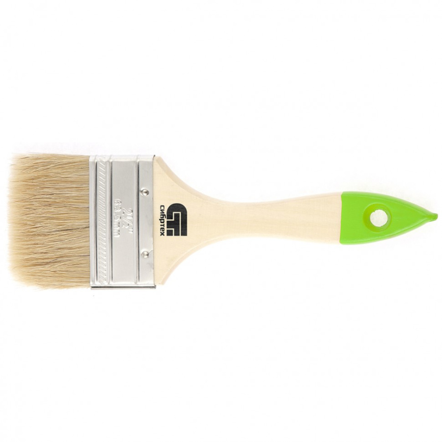 Кисть плоская 63 мм, натуральная щетина, деревянная ручка Сибртех 82264