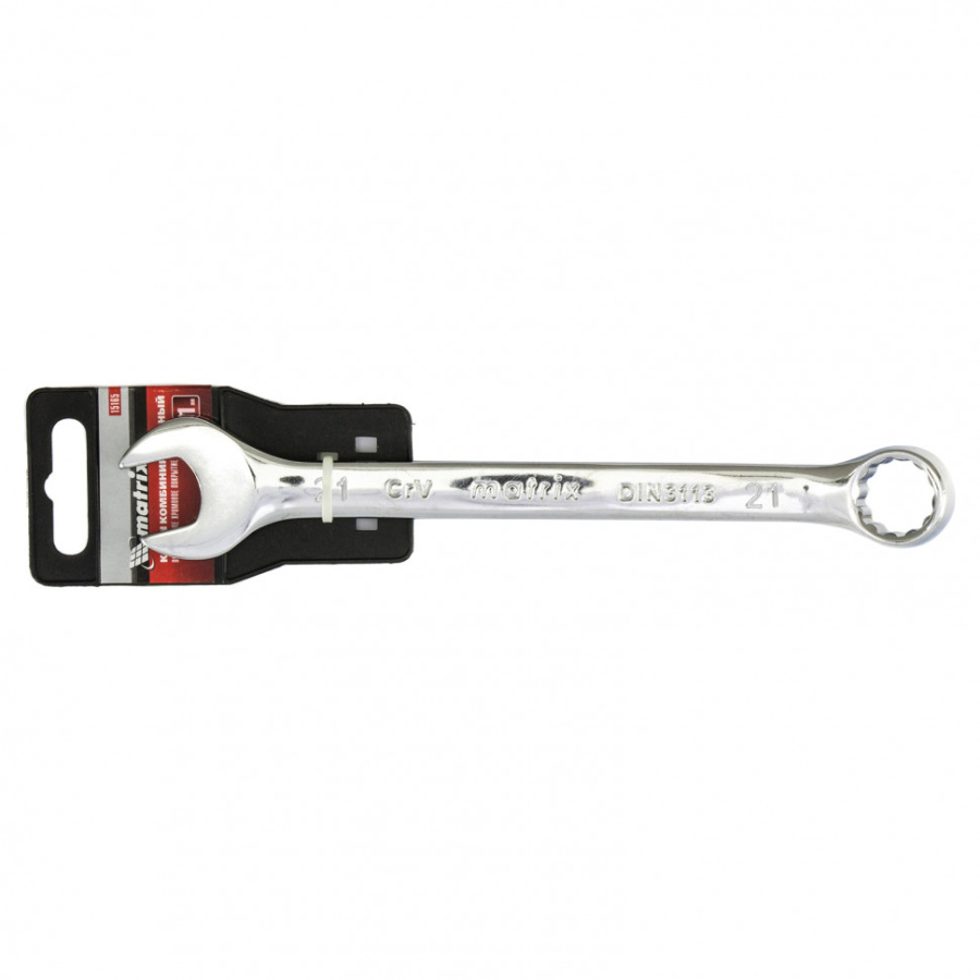 Ключ комбинированный, 21 мм, CrV, полированный хром Matrix 15165