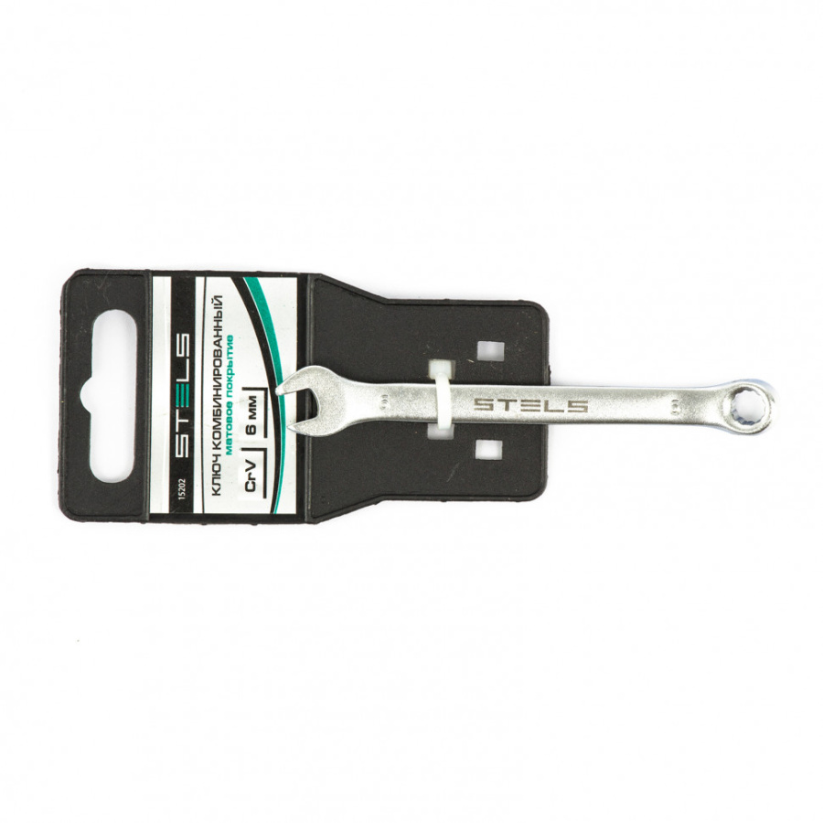 Ключ комбинированный, 6 мм, CrV, матовый хром Stels 15202