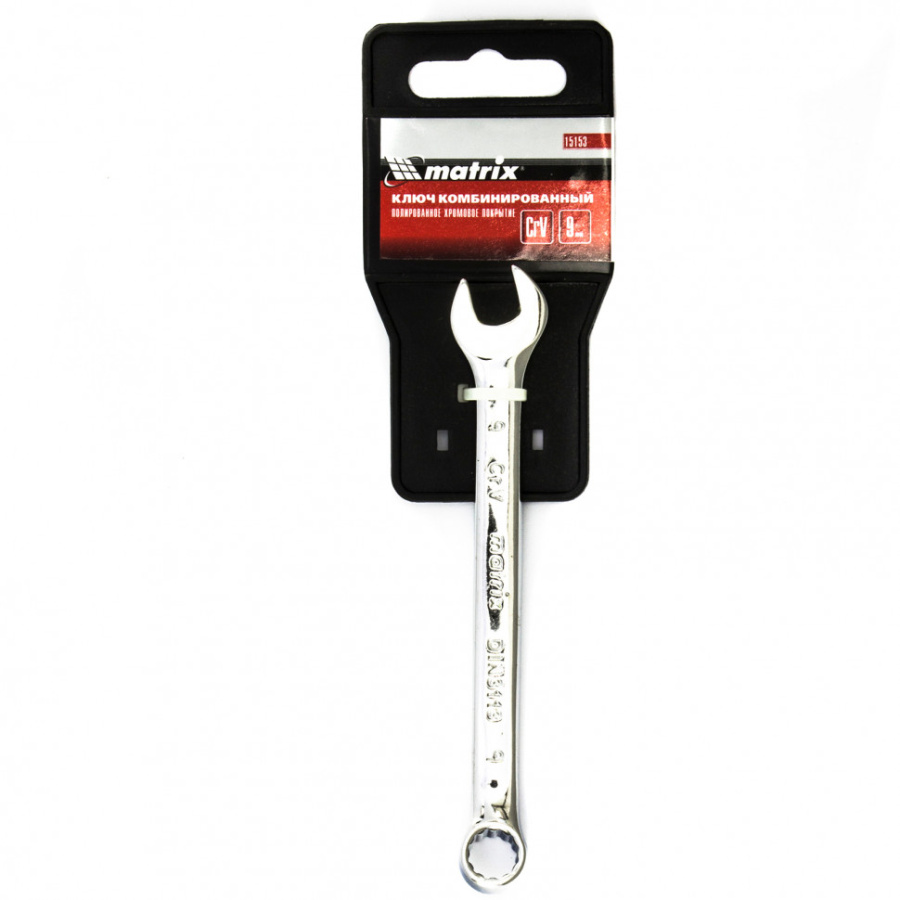 Ключ комбинированный, 9 мм, CrV, полированный хром Matrix 15153
