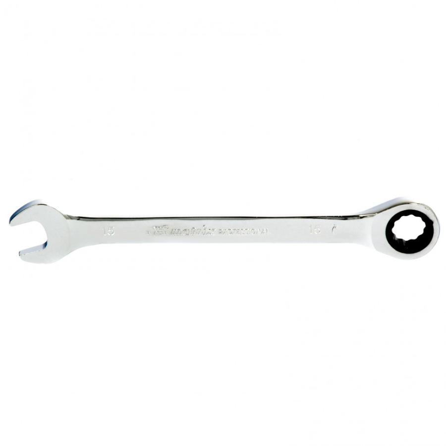 Ключ комбинированный трещоточный, 15 мм, CrV, зеркальный хром Matrix Professional 14808