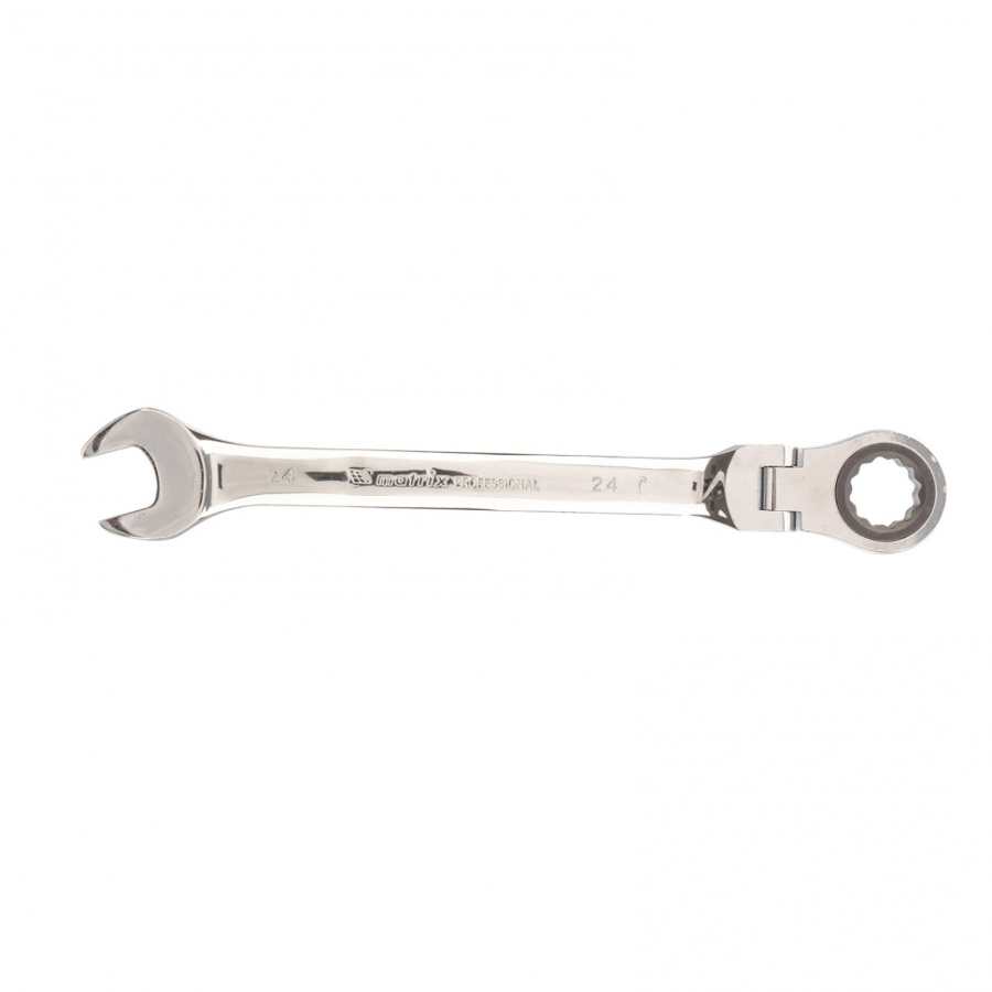 Ключ комбинированный трещоточный, 24 мм, CrV, шарнирный, зеркальный хром Matrix 14845