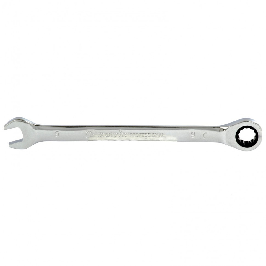 Ключ комбинированный трещоточный, 9 мм, CrV, зеркальный хром Matrix Professional 14802