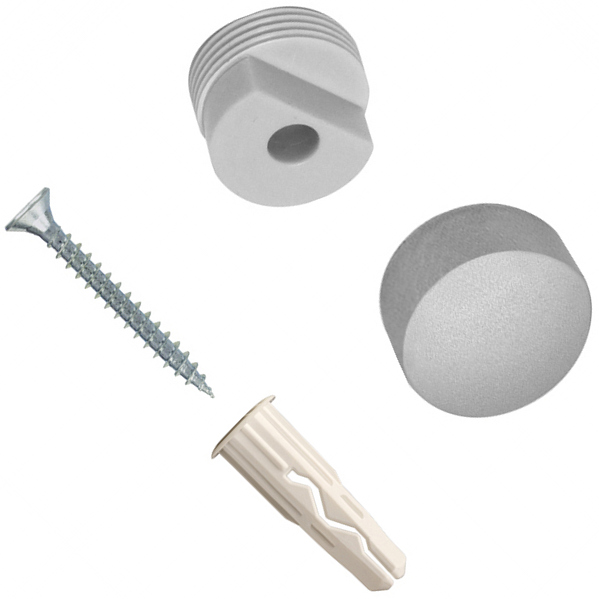 Круглые держатели втулки обхватывают зеркало сверху и снизу, плотно прижимая его к стене. Колпачок покрыт однокомпонентной эмалью для пластмасс с последующим защитным слоем лака. Такое покрытие имеет очень высокие показатели стойкости к спиртосодержащим веществам, кремам, моющим средствам и истиранию. Входящий в комплект универсальный дюбель позволяет закрепиться в любые материалы основания. Один комплект крепления рассчитан на установку зеркала толщиной 3-5 мм и общей площадью до 1 м2.