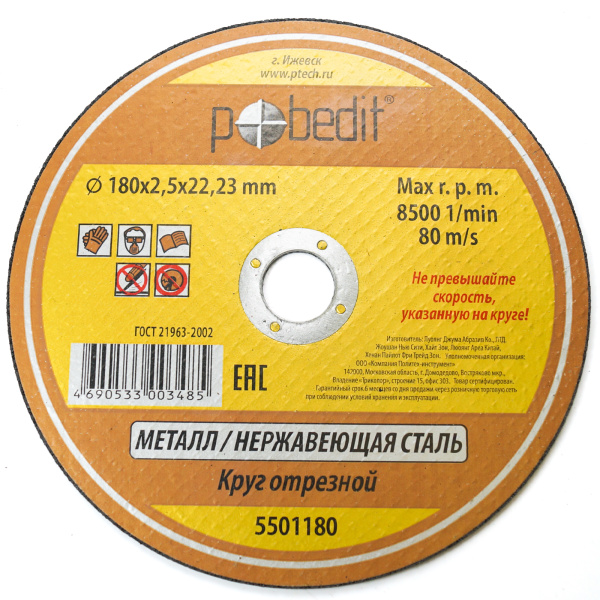 КРУГ ОТРЕЗНОЙ «Pobedit» 180х2,5х22 мм по Металлу 5501180