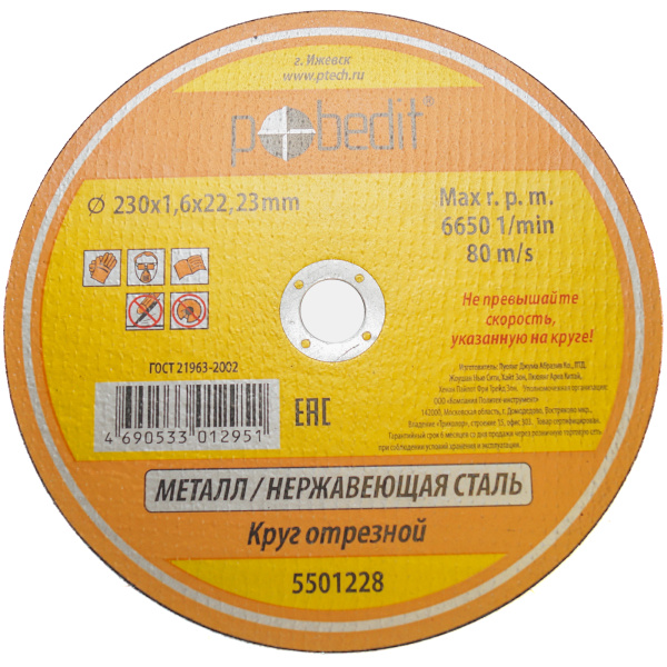 КРУГ ОТРЕЗНОЙ «Pobedit» 230х1,6х22 мм по Металлу 5501228
