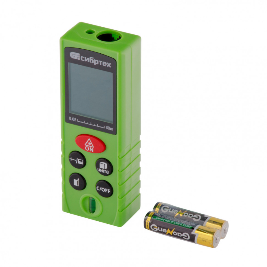 Лазерный дальномер Сибртех РМ-60 может определять длину, объем и площадь помещения. Он применяется при проведении строительных и отделочных работ: укладке плитки, установке окон, дверей, напольных покрытий, натяжных потолков. Высокая дальность измерения до 60 м позволяет работать на улице, поэтому дальномер пригодится геодезистам и дорожным службам.