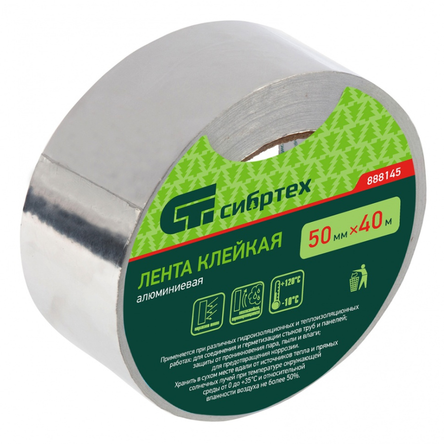 Лента клейкая алюминиевая, 50 мм х 40 м Сибртех 888145