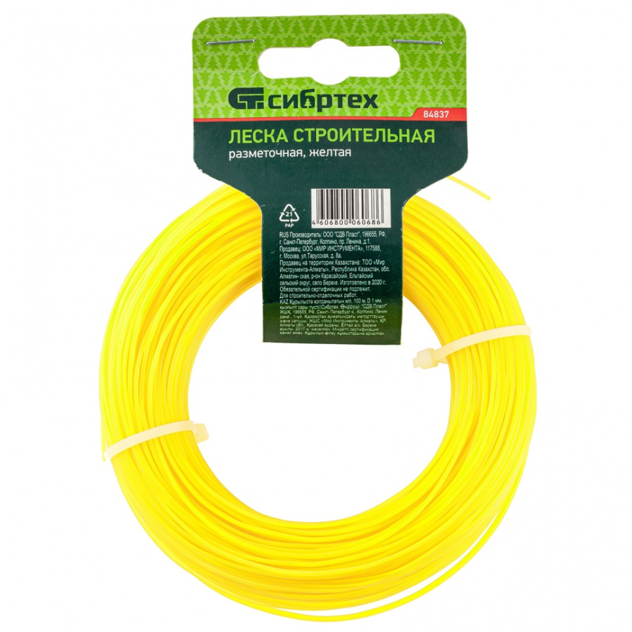 Леска строительная, 100 м, D 1 мм, цвет желтый Сибртех 84837