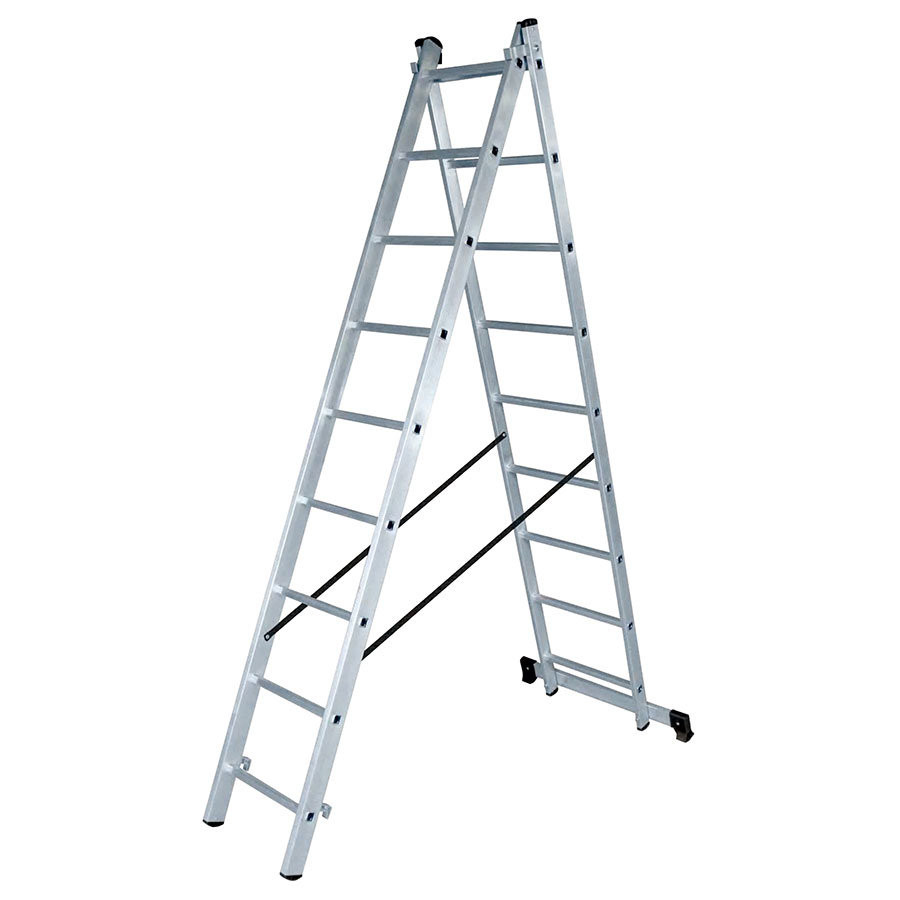 Лестница алюминиевая ВИХРЬ ЛА 2х9 двухсекционная, может использоваться как стремянка и приставная лестница.