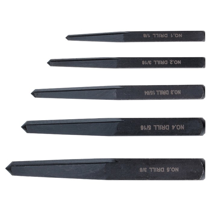 Комплектация 5 экстракторов для шпилек болтов: № 1 (3–6 мм), № 2 (6–8 мм), № 3 (8–11 мм), № 4 (11–14 мм), № 5 (14–18 мм).