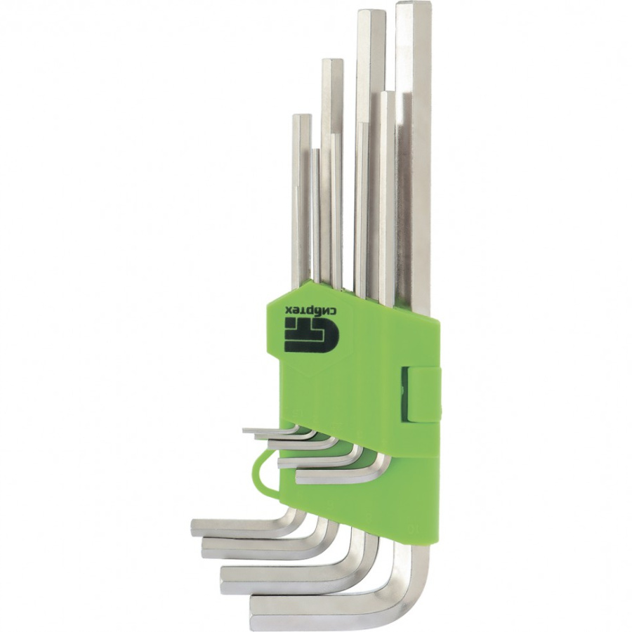 Набор ключей имбусовых HEX, 1.5-10 мм, 45x, закаленные, 9 шт, удлиненные, никель Сибртех 12318