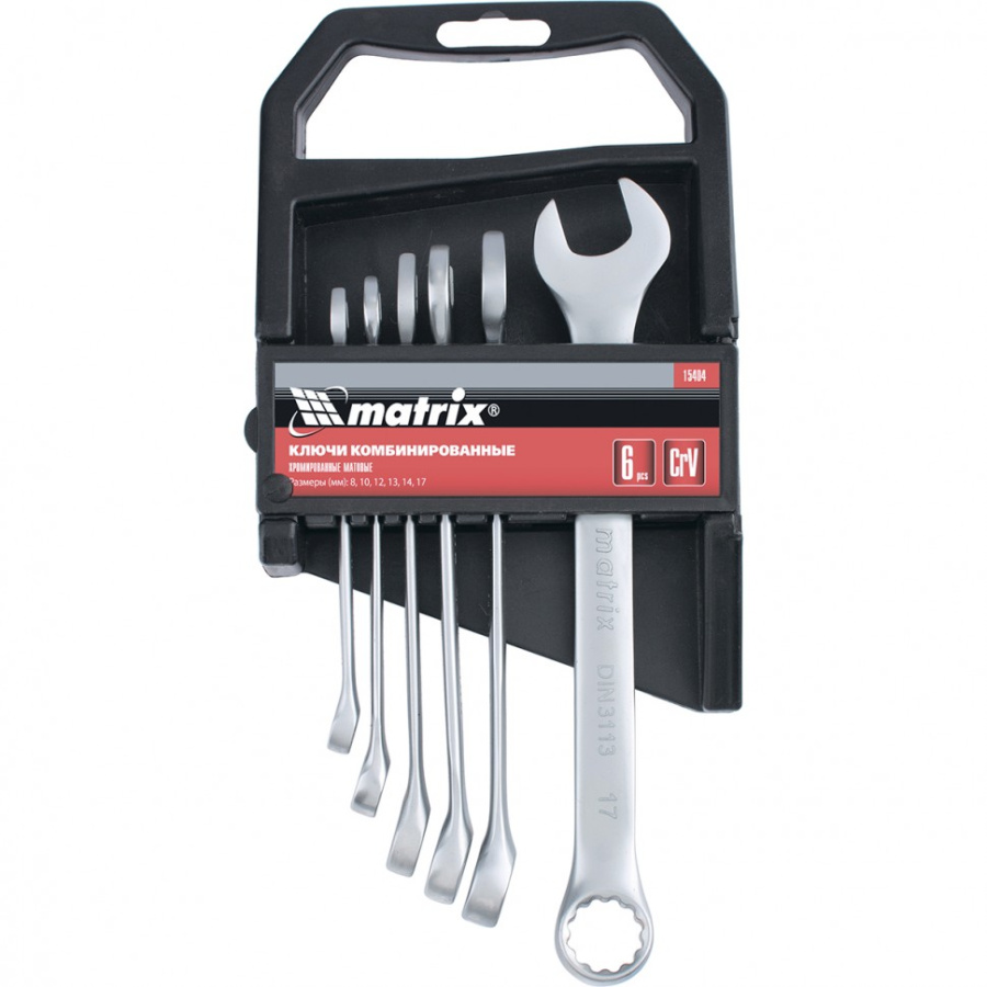Набор ключей комбинированных, 8-17 мм, 6 шт, CrV, матовый хром Matrix 15404