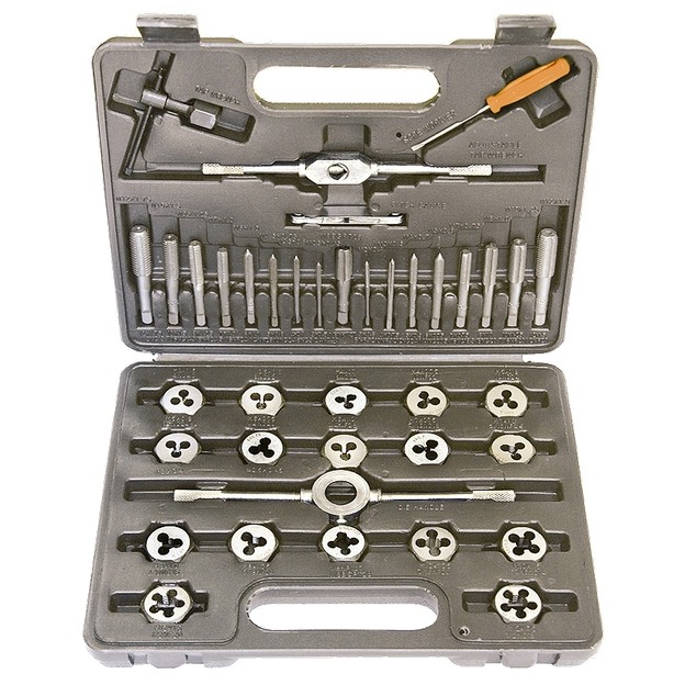 Набор метчиков и плашек является универсальным и используется для нарезания как внешней, так и внутренней резьбы (от М3 до М12).