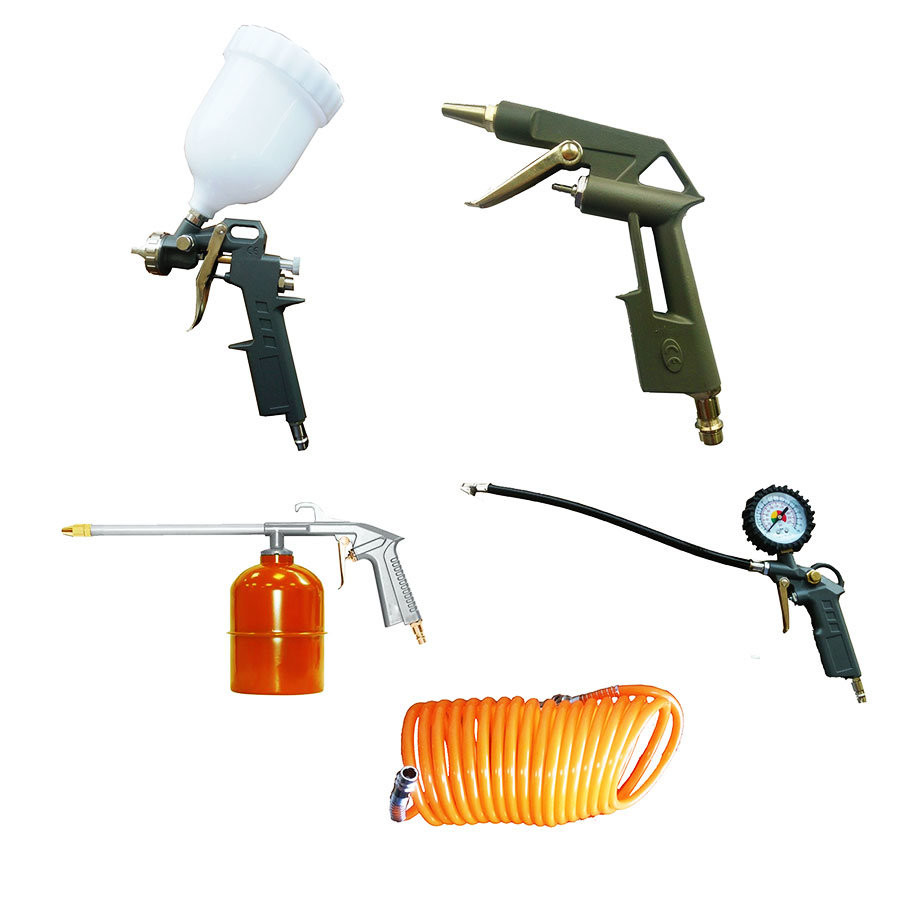 - Подключайте пневмоинструмент с помощью 5-и метрового прочного витого шланга