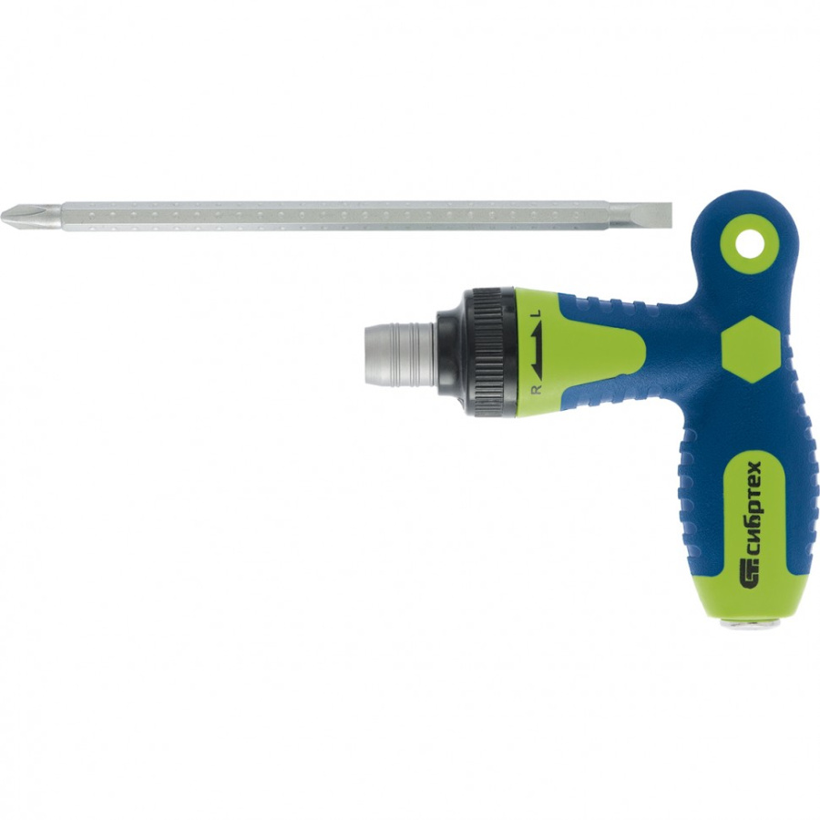 Отвертка реверсивная Т-образная комбинированная PH2/SL6, CrV Сибртех 13364