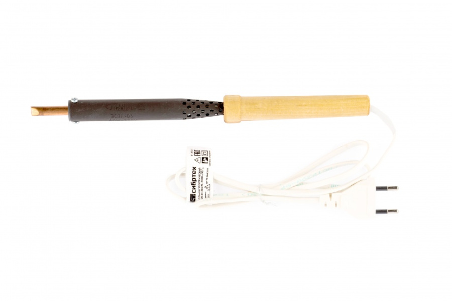 Паяльник электрический ЭПСН-03-80/220, деревянная ручка, Россия Сибртех 91310